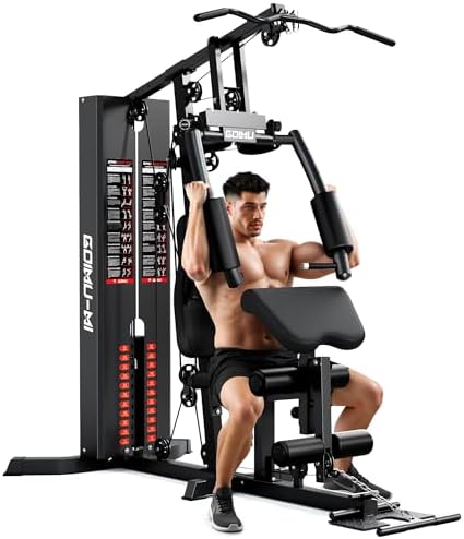 Integrated stack for easy resistance selection. Pulley allows diverse movement patterns. Targets all major groups efficiently. Stable base prevents tipping. Home setup saves gym trips. Builds endurance through reps. Adjustable for user height.